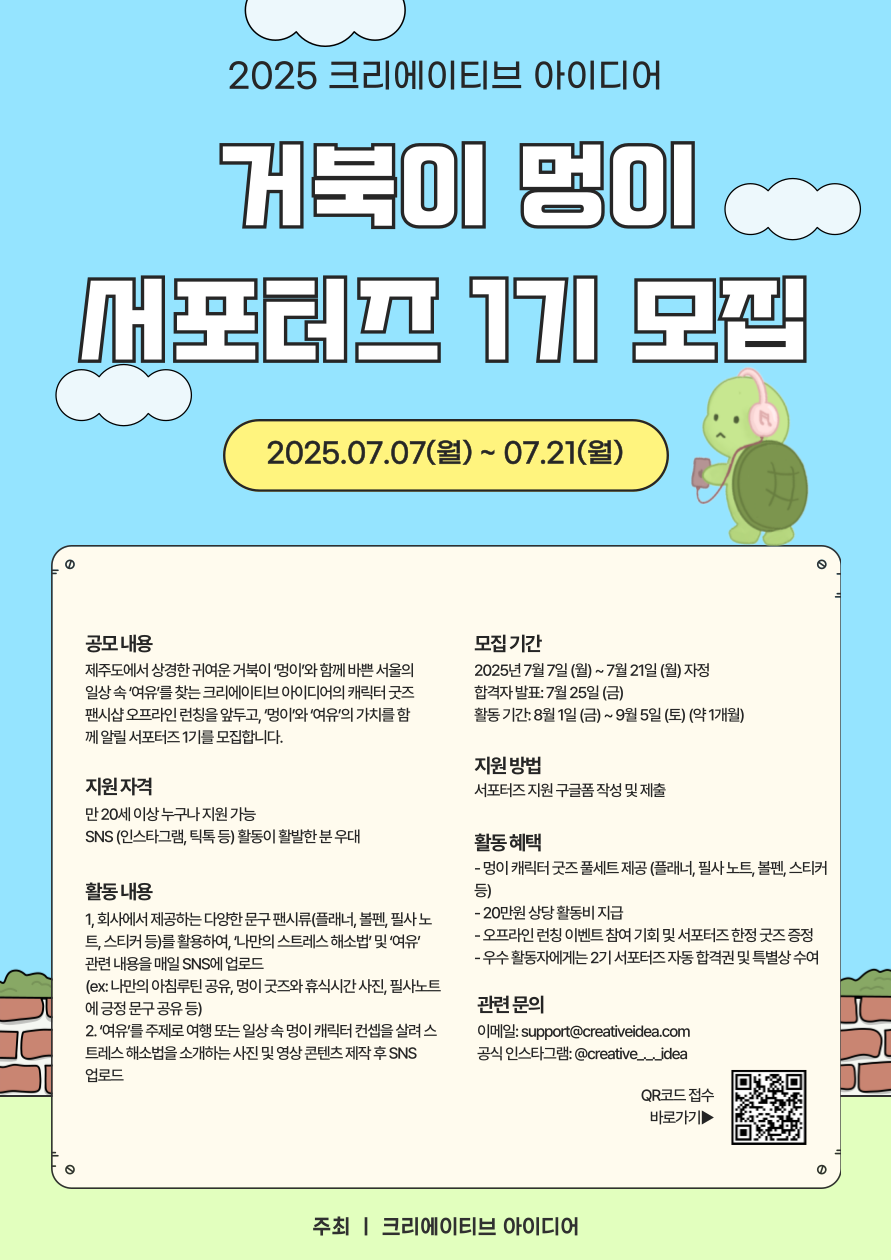 2025 크리에이티브 아이디어 ‘거북이 멍이’ 서포터즈 1기 모집