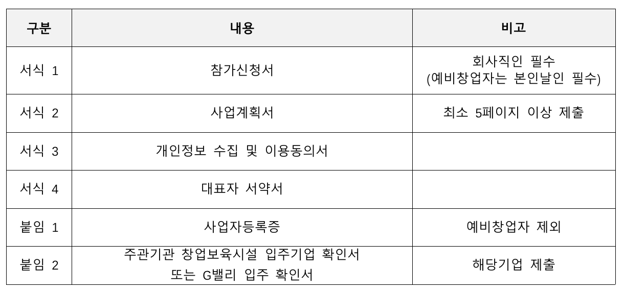 - 평가방법 : 지원신청서, 사업계획서 기반 서류평가