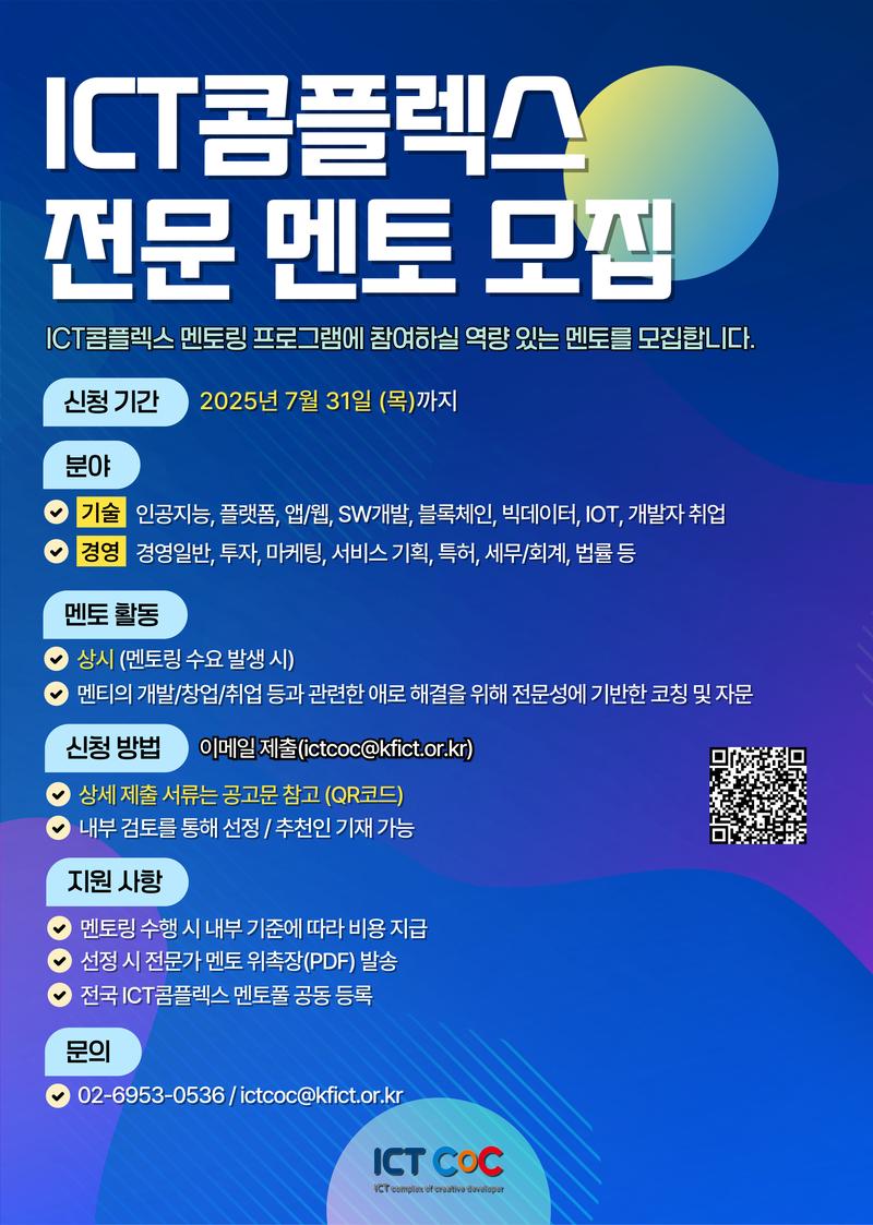 2025년 ICT콤플렉스 전문가 멘토 모집 안내