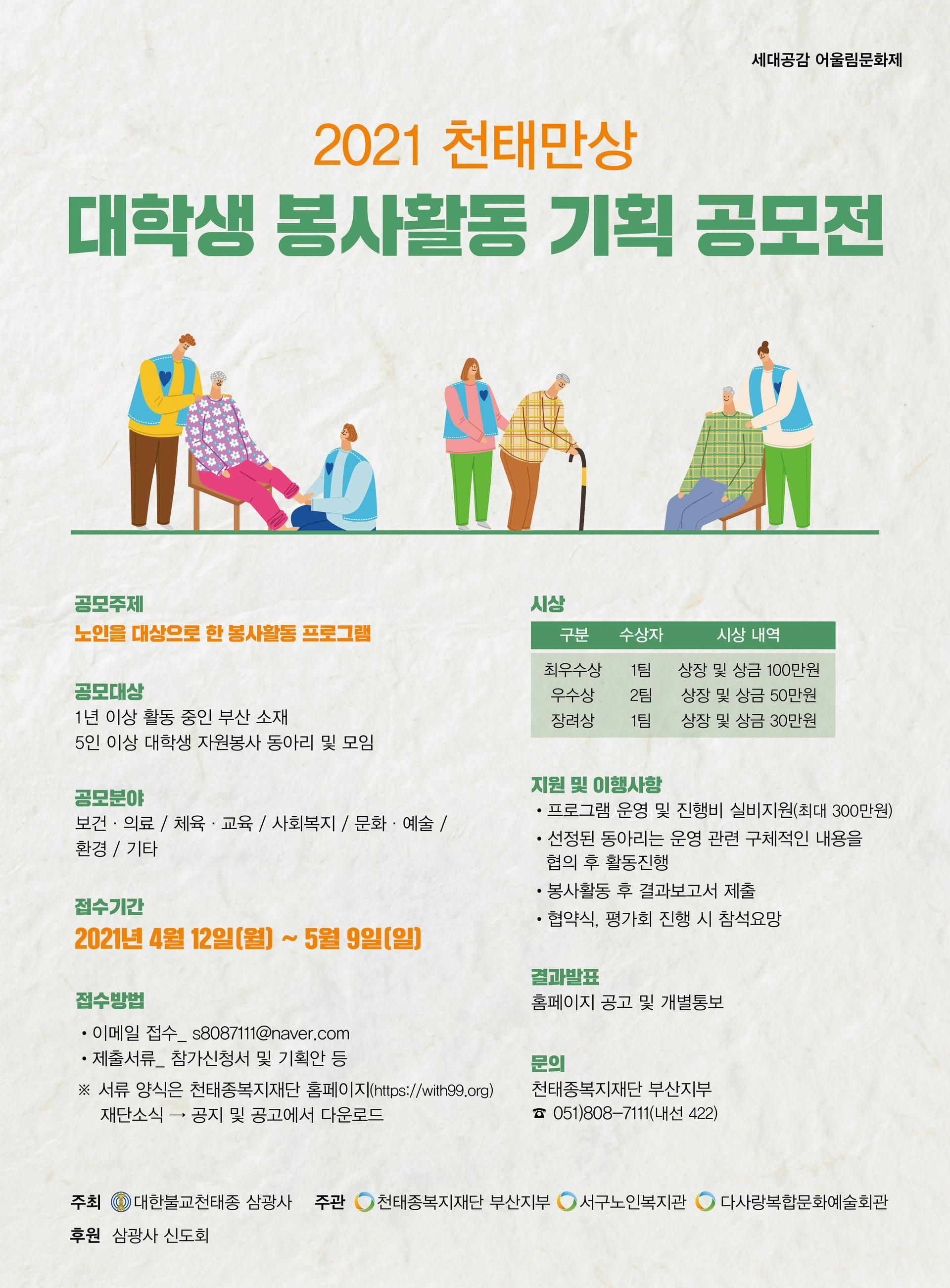 ■ 공모전 문의 : 천태종복지재단 부산지부 051)808-7111(내선 422)