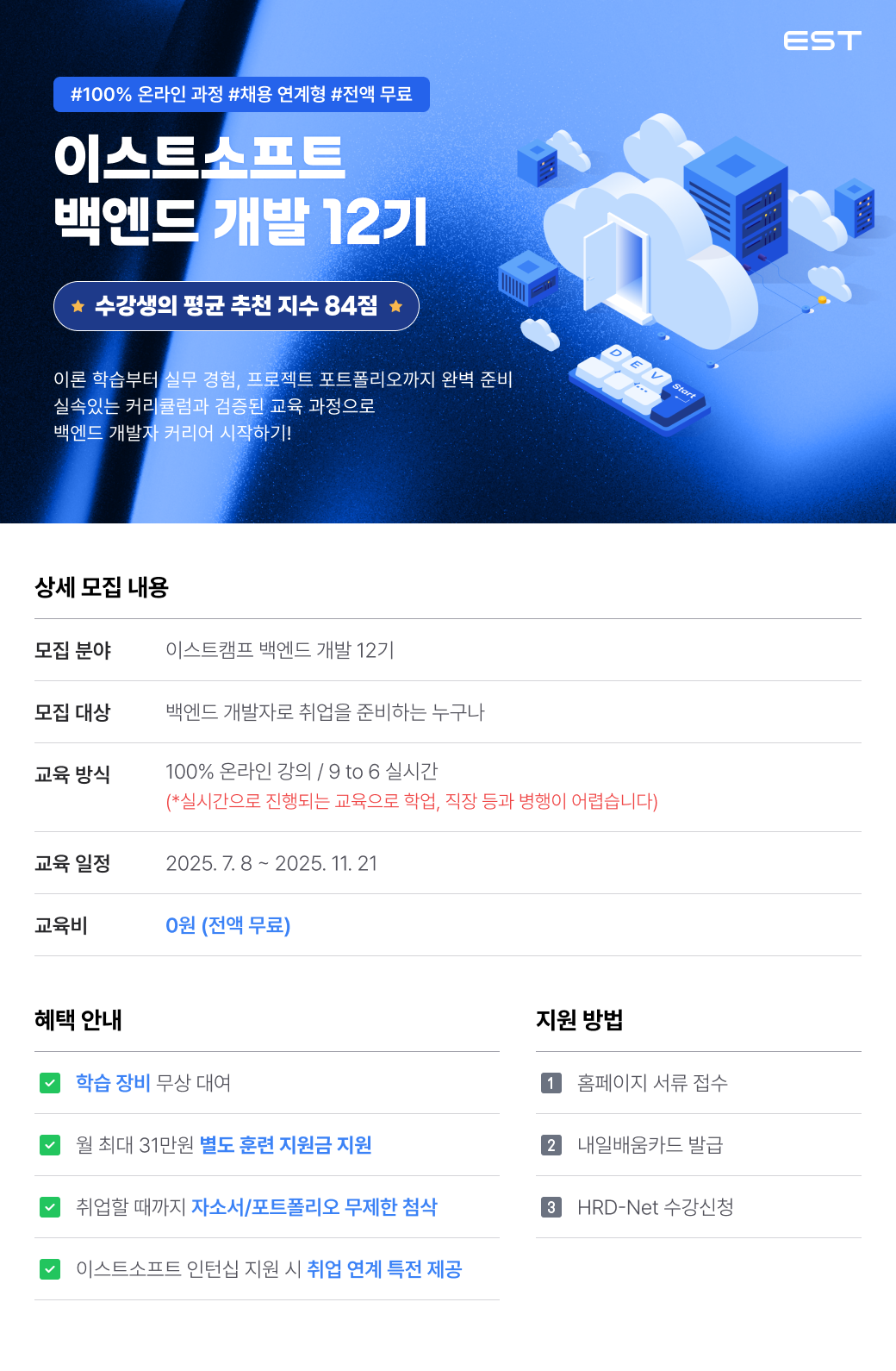 백엔드 개발 12기 지금 모집 중 ▶ 링크