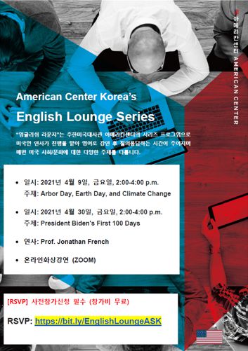 안녕하세요. 주한미국대사관 아메리칸센터의 "English Lounge Series" 프로그램에 초대합니다.