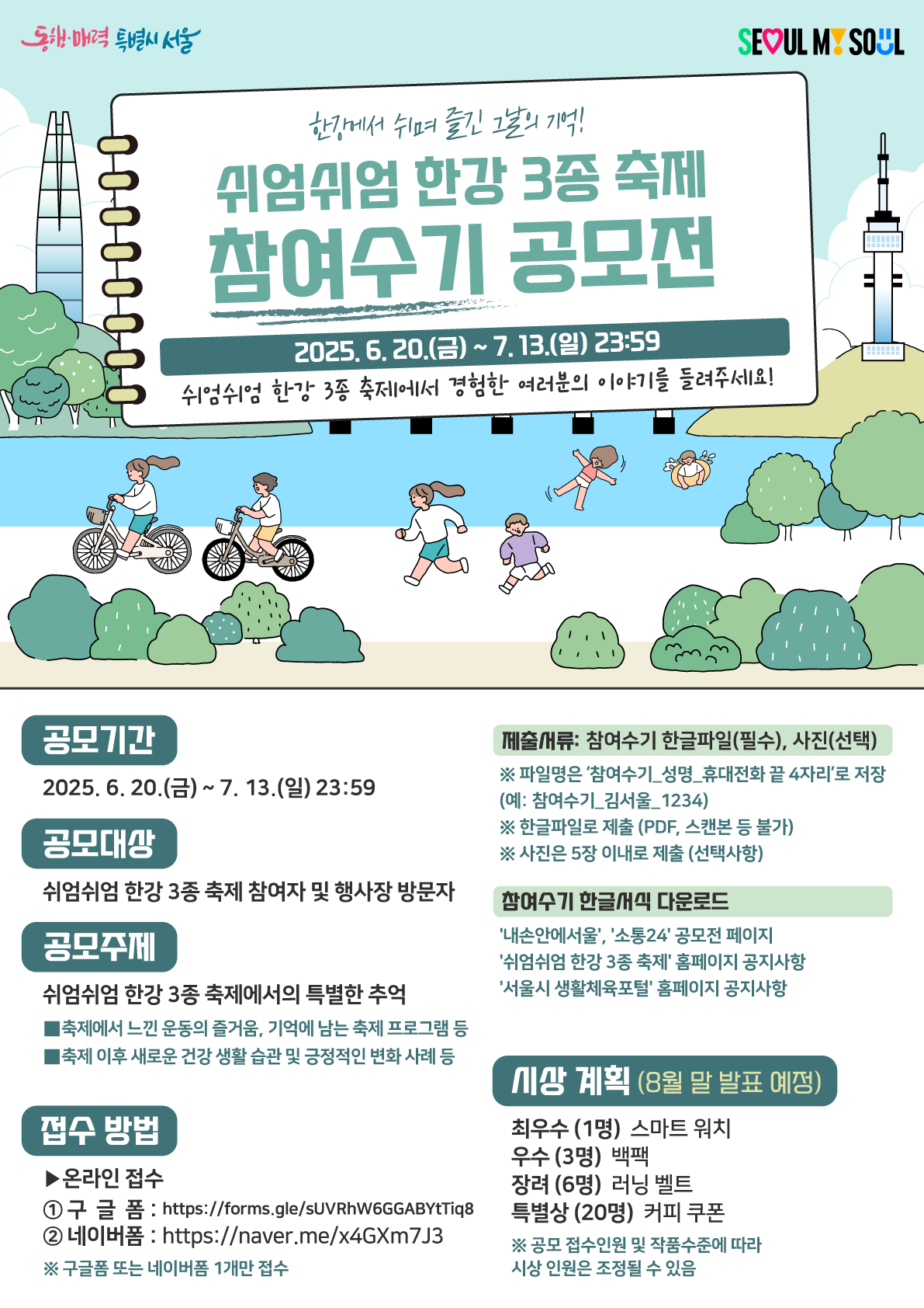 제2회 쉬엄쉬엄 한강 3종 축제 참여수기 공모전 개최! ✏