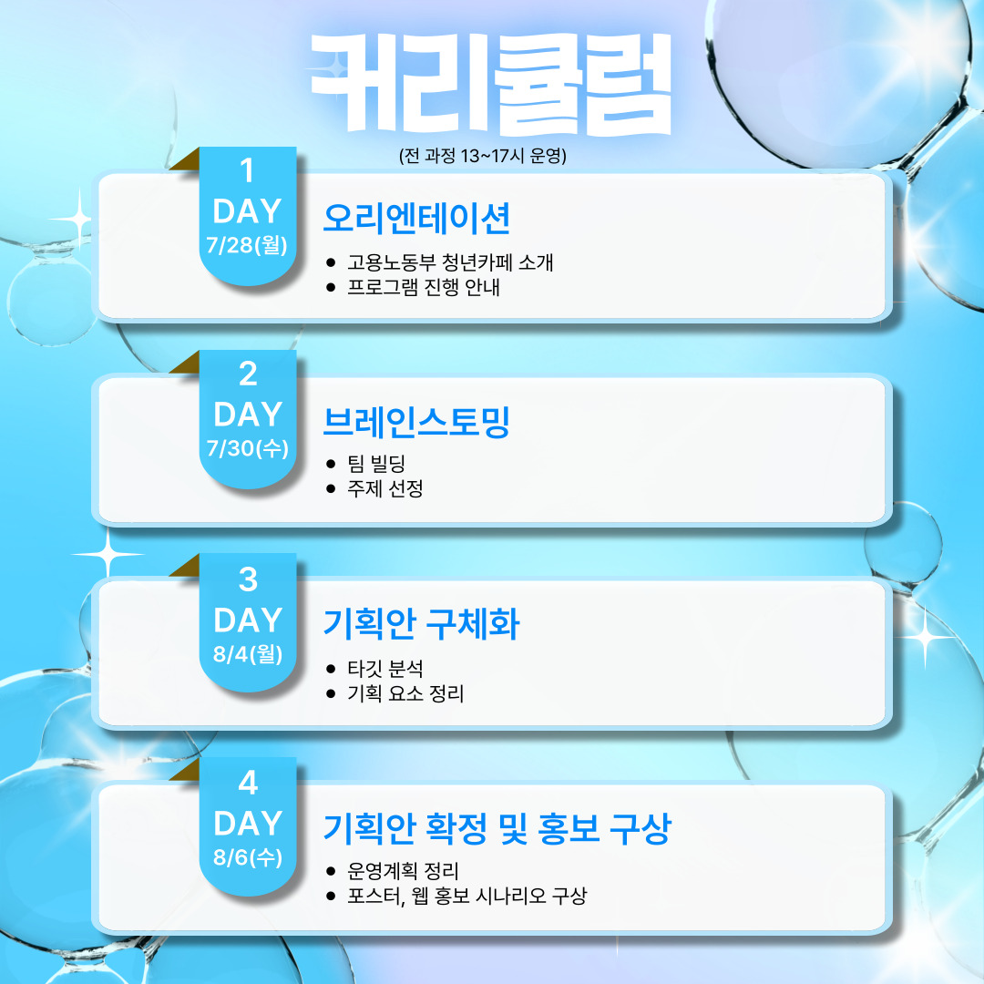 청년카페 홍보와 직접 원데이클래스를 기획·운영해보는 실전형 서포터즈 입니다.