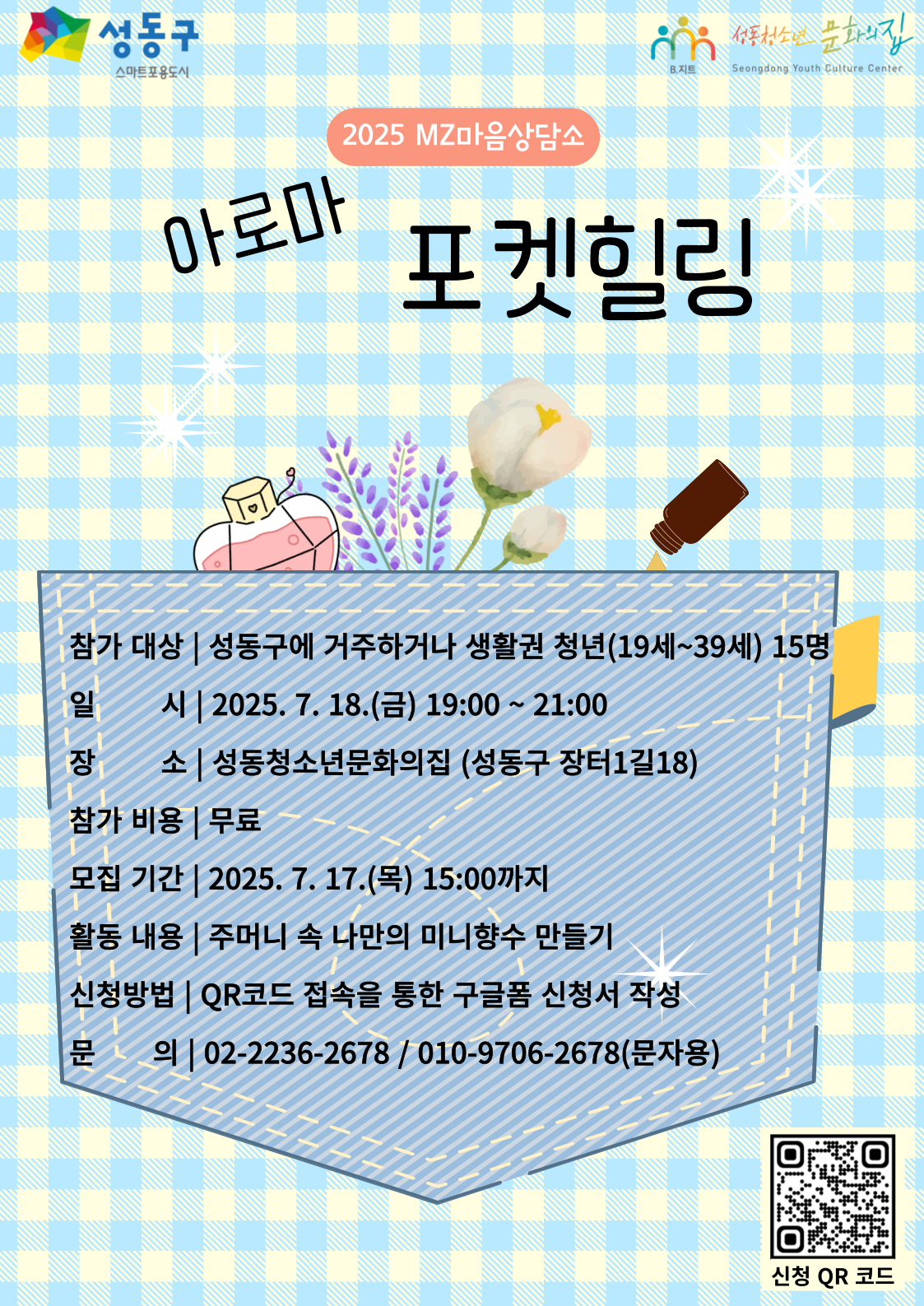MZ마음상담소에서 아로마 오일을 이용한 나만의 미니향수 만들기 <아로마 포켓 힐링> 프로그램을 진행합니다.