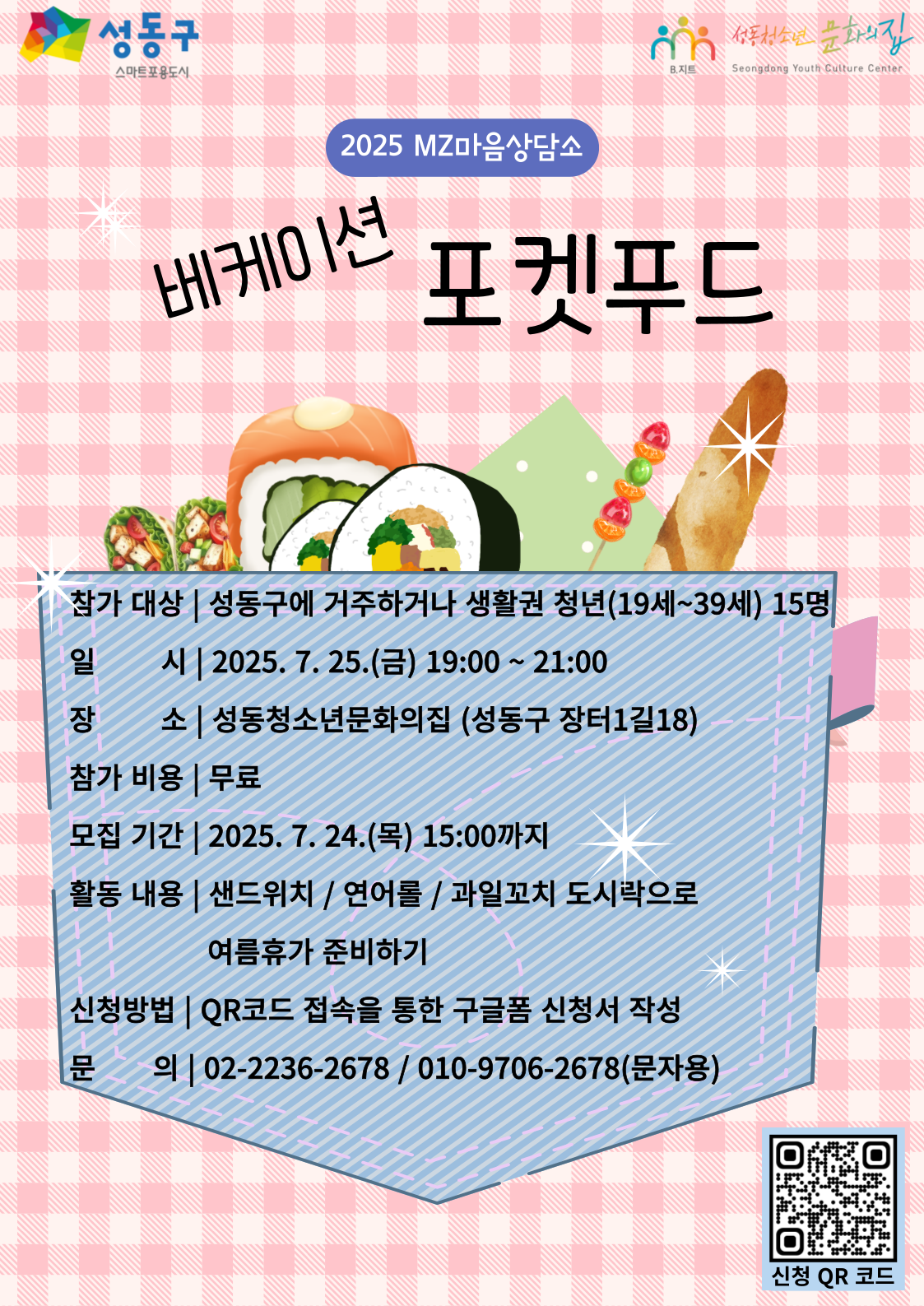 MZ마음상담소에서 청년을 위한 쇼셜다이닝 <베케이션 포켓푸드> 프로그램을 진행합니다.