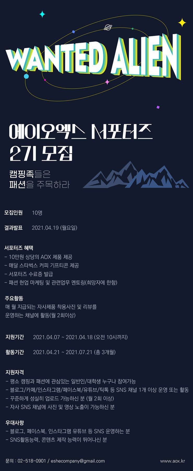 캠핑족들은 패션을 주목하라 에이오엑스 서포터즈 2기 모집
