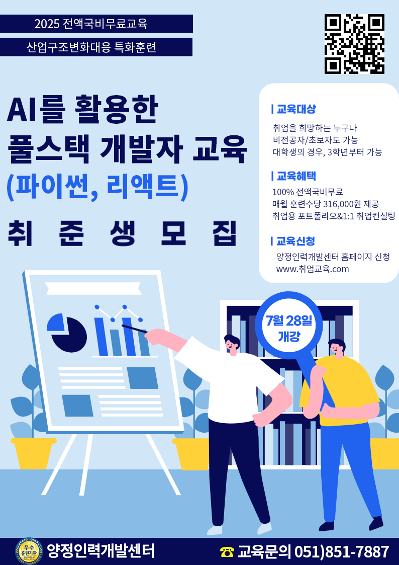 [전액국비지원] AI 활용 풀스택개발자(파이썬, 리액트, 데이터분석) 취업교육생 모집