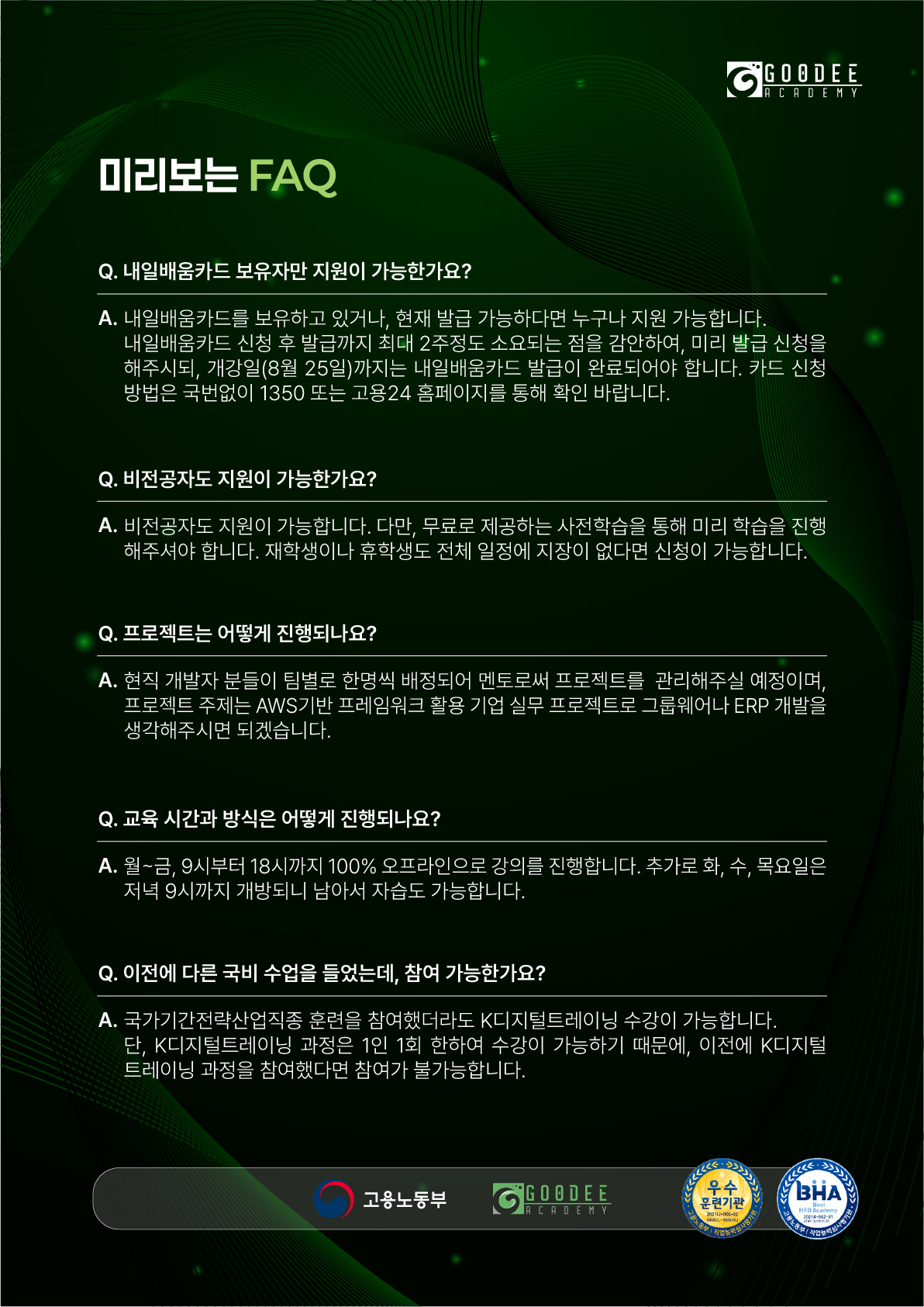 - 개강일정: 95기 2025.08.25 ~ 2026.03.06 (1040시간)