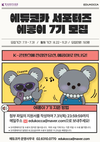 #에듀코카 #한국콘텐츠진흥원 #서포터즈 #에콩이모집