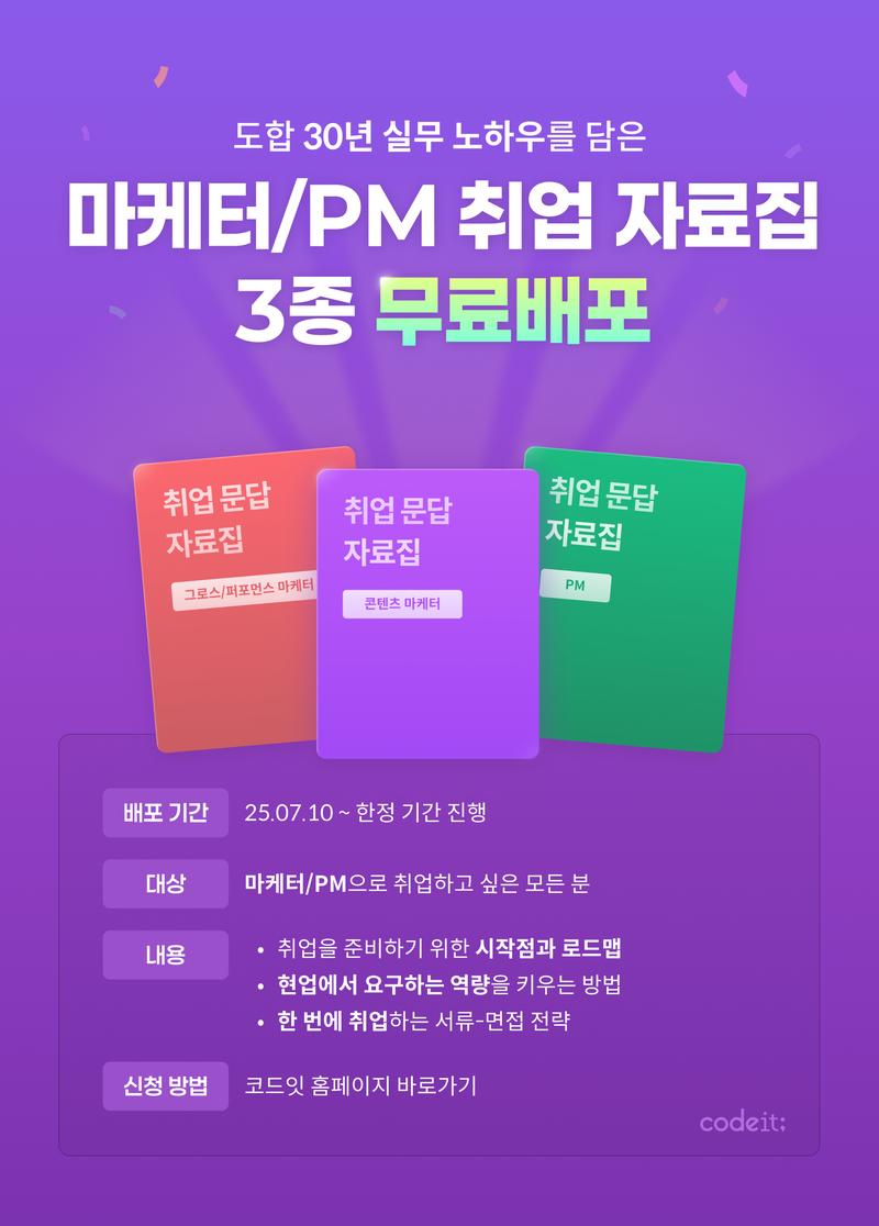 [코드잇] 마케터/PM 취업 문답 자료집 무료배포 📚