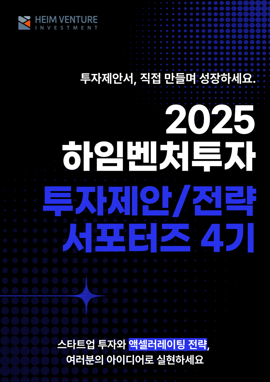 2025 상반기 하임벤처투자와 함께할 ‘HEIM 서포터즈 4기‘를 모집합니다.