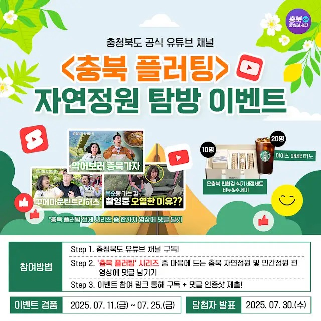 추첨을 통해 [온충북 친환경 식기세트] 10분, [스타벅스 커피] 20분에게 기프티콘을 쏩니다!