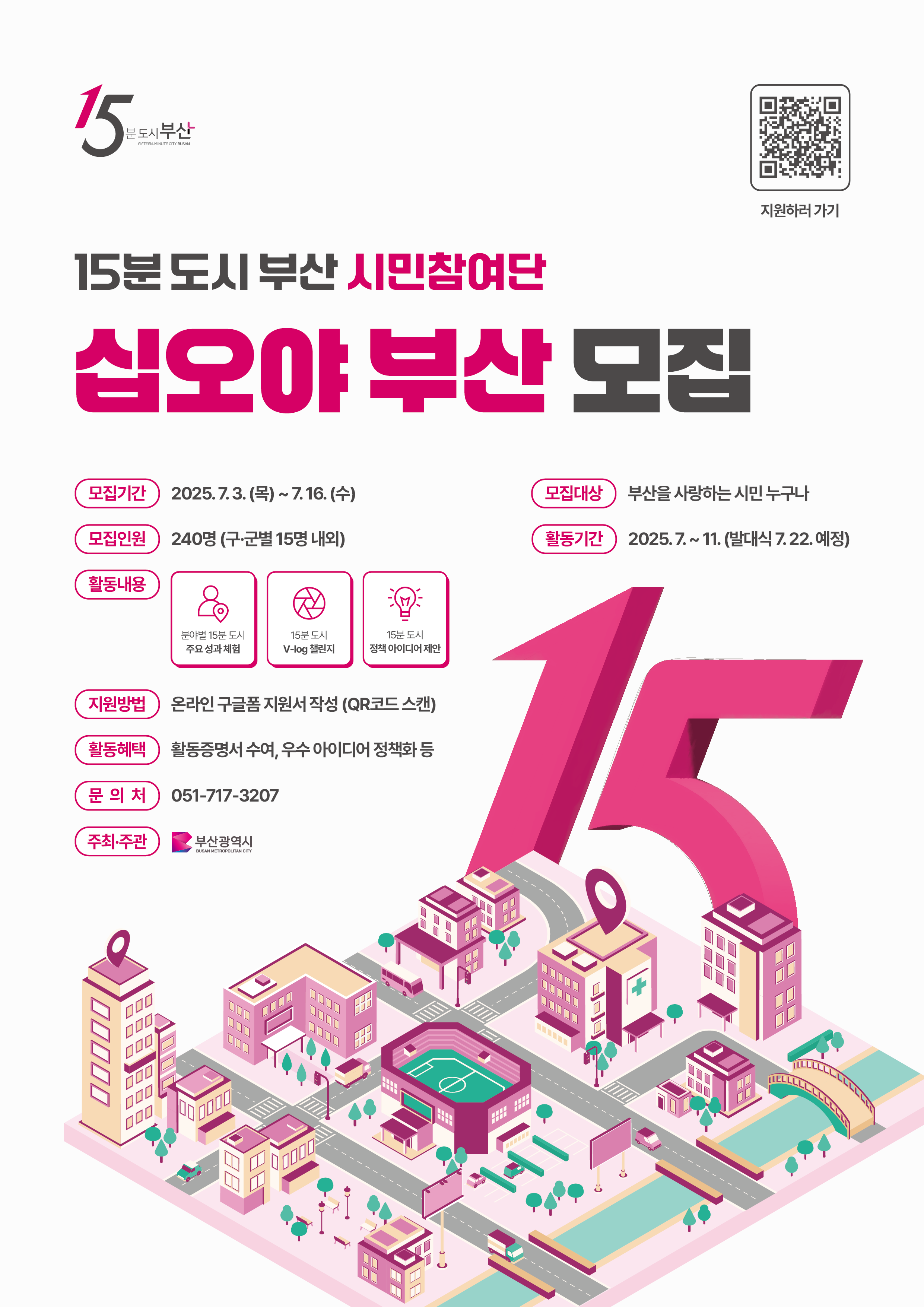 모집인원: 240명 (부산 16개 구·군별 15명씩!)