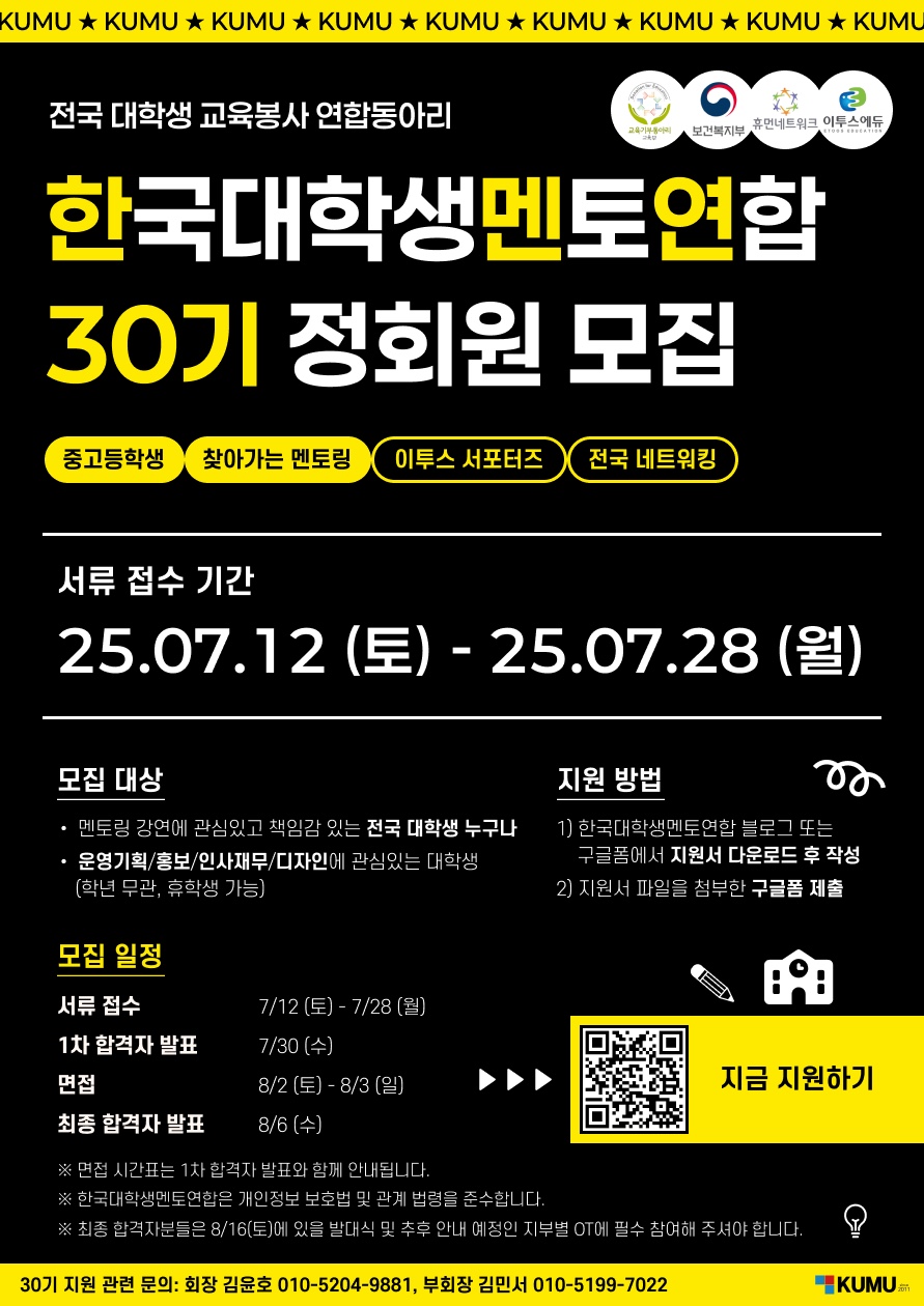 👨🏻🏫 한국대학생멘토연합(KUMU) 30기 신입 기수 모집 👩🏻🏫
