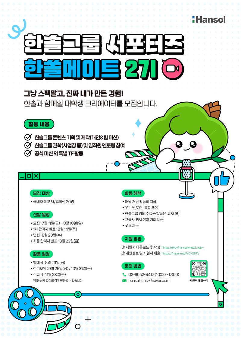 - 지원서 다운로드 링크: https://bit.ly/hanssolmate2_apply