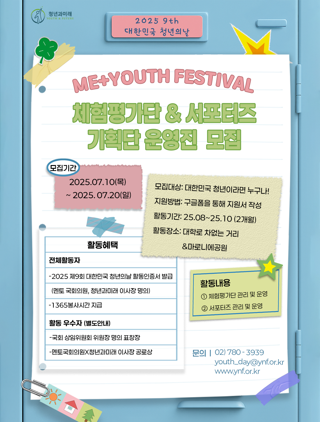 🎉'2025 제9회 대한민국 청년의 날'을 체험과 평가 및 행사 서포터즈 주실 '체험평가단 & 서포터즈 기획단 운영진 분들을 모집합니다!🎉
