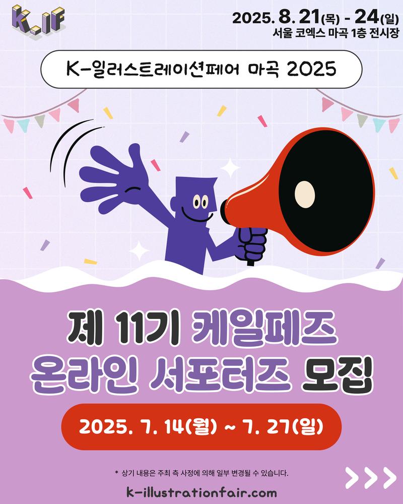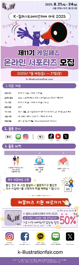 'K-일러스트레이션페어 마곡 2025'의 온라인 서포터즈로 활동하실 ✨제11기 케일페즈✨ 를 모집합니다. 많은 관심 부탁드립니다 🍒🧡