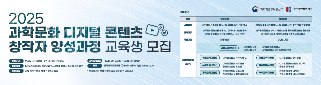 💙 교육명 : 2025 과학문화 디지털 콘텐츠 창작자 양성과정 (기초 클래스 | 심화 클래스)