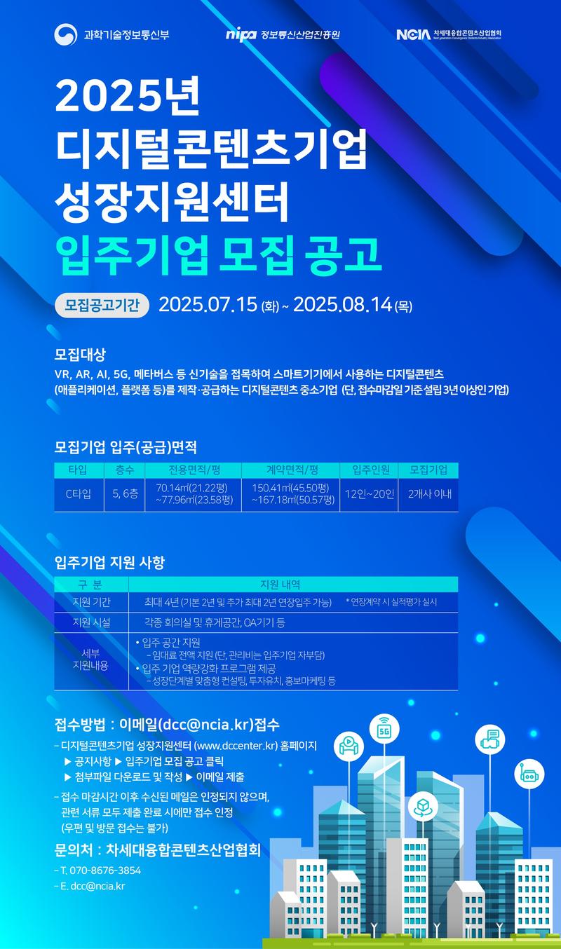 ○ 차세대융합콘텐츠산업협회 (전화 : 070-8676-3854 / 이메일 : dcc@ncia.kr)