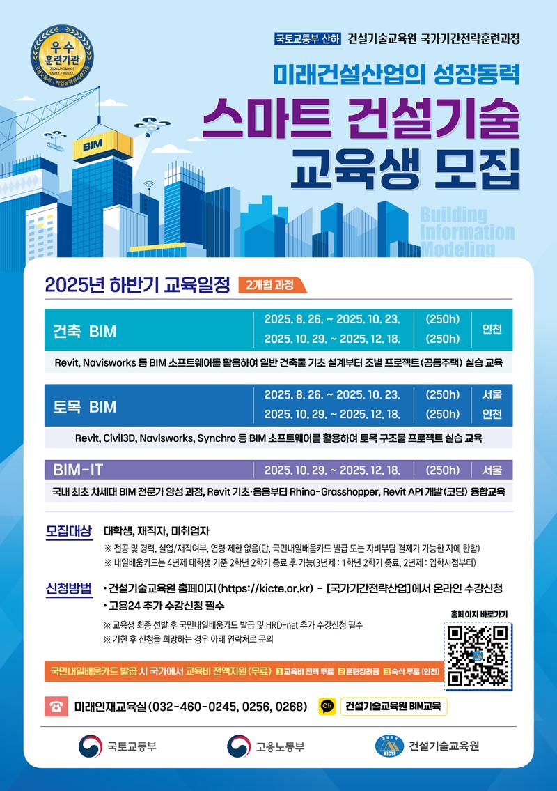 - 신청방법: 건설기술교육원 홈페이지 - [국가기간전략산업]에서 온라인 수강신청