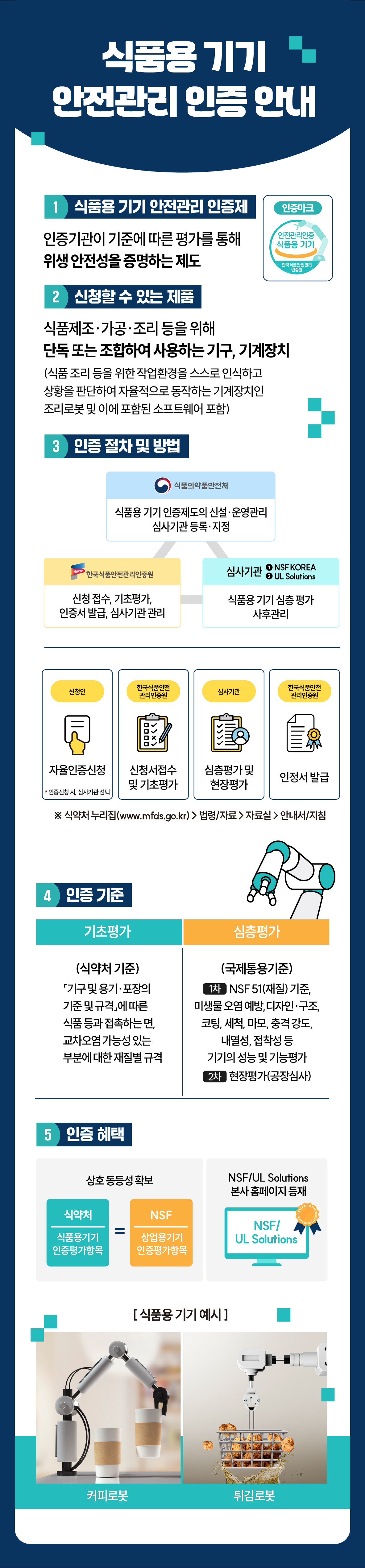 *식품용 기기 안전관리 인증은 조리로봇 등의 제조업체가 자율적으로 인증신청을 하면