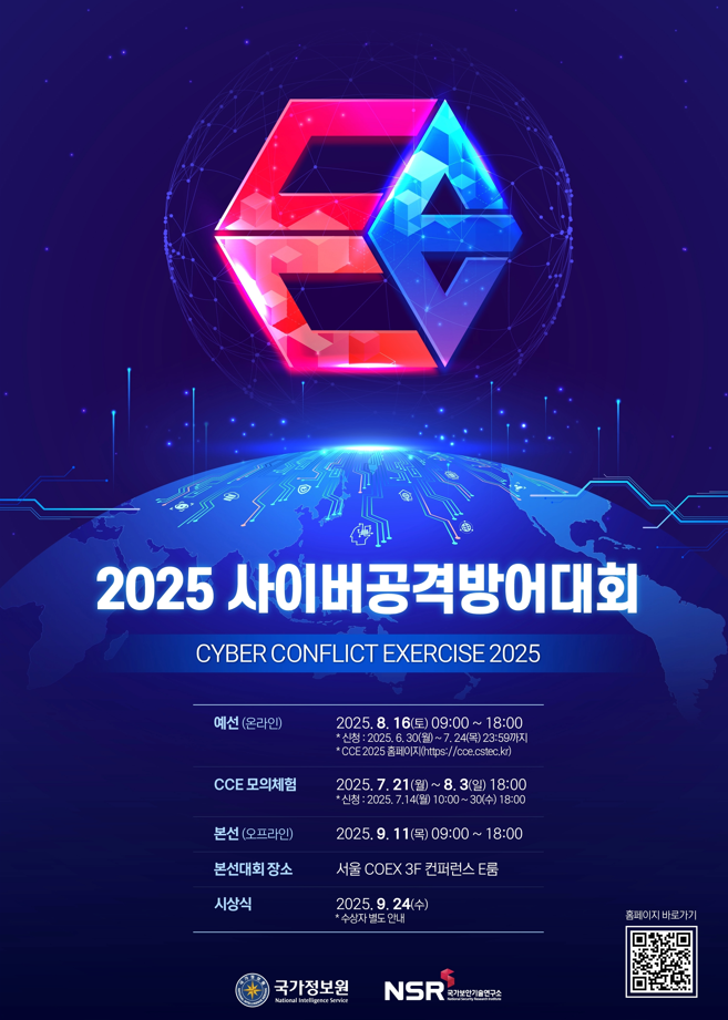 #사이버보안 #해커대회 #화이트해커 #CCE2025 #CSK2025 #사이버공격방어대회 #정보보안 #보안전문가 #사이버서밋코리아 #무료참가 #보안꿈나무 #사이버보안이벤트 #국가정보원 #해킹대회 #사이버전문가