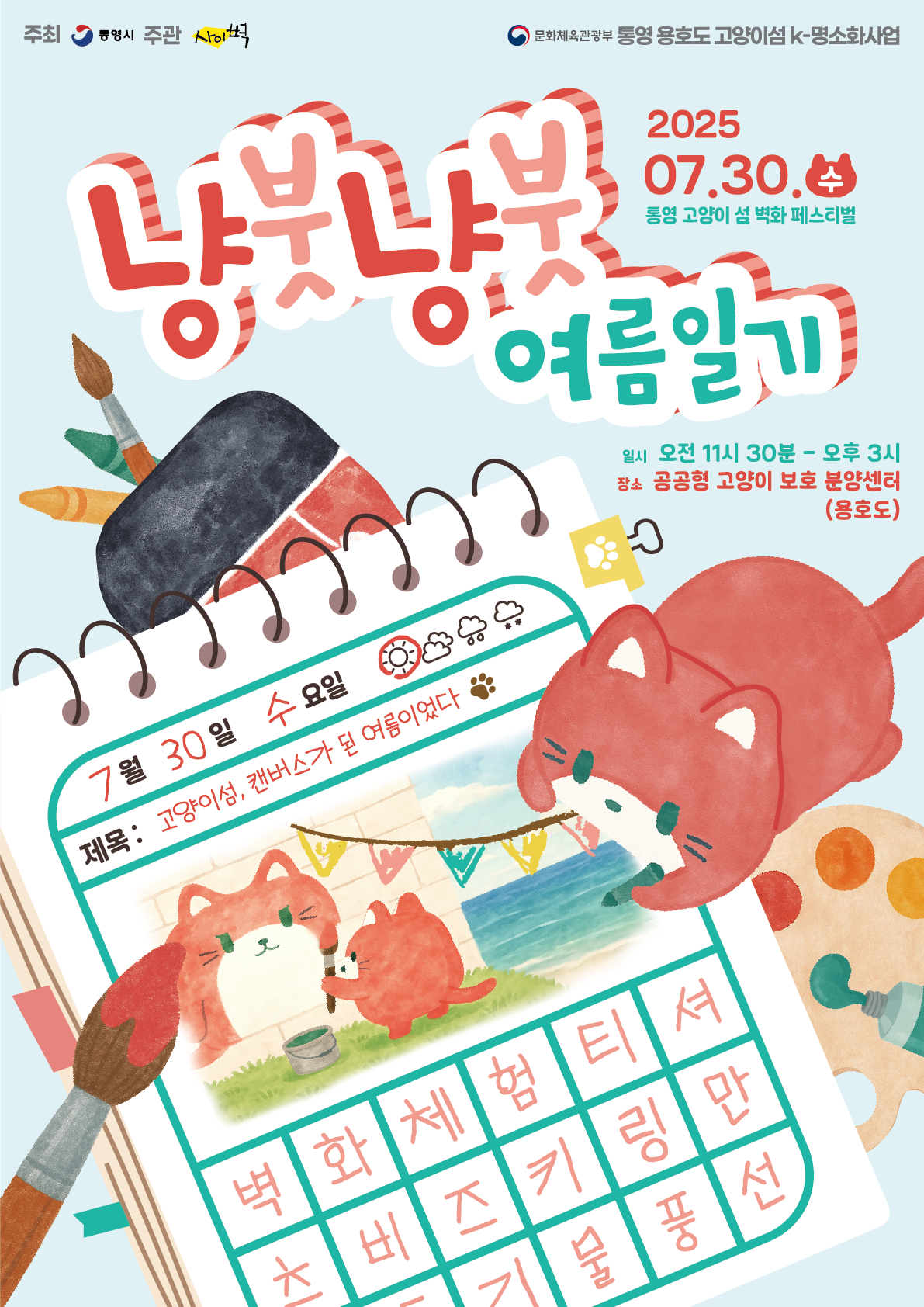 제 1회 통영 고양이섬 벽화 페스티벌 '냥붓냥붓 여름일기' 참여자 모집