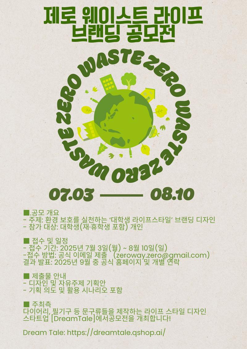 「제로웨이스트 라이프 브랜딩 공모전」 개최 안내