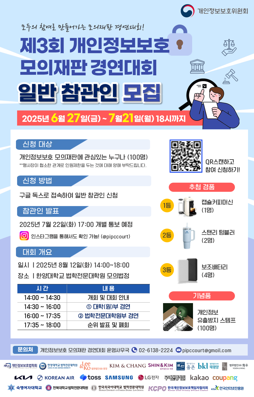 🎉 개인정보보호위원회에서 《제3회 개인정보보호 모의재판 경연대회》 일반 참관인을 모집합니다!️️👏🏻👏🏻