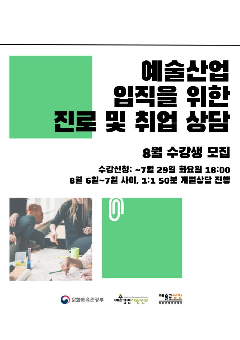 예술산업 입직 희망자의 맞춤형 취업 경로 개발을 위한 1:1 개인별 상담 프로그램입니다.