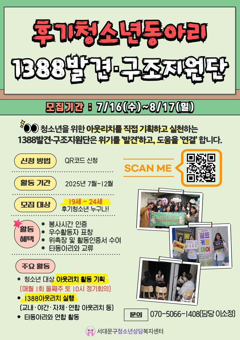 후기청소년동아리 1388발견구조지원단 추가 모집