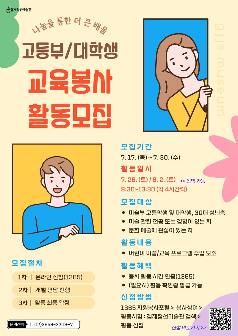 겸재정선미술관 문화예술교육 봉사자 활동 모집 안내(~7.30)