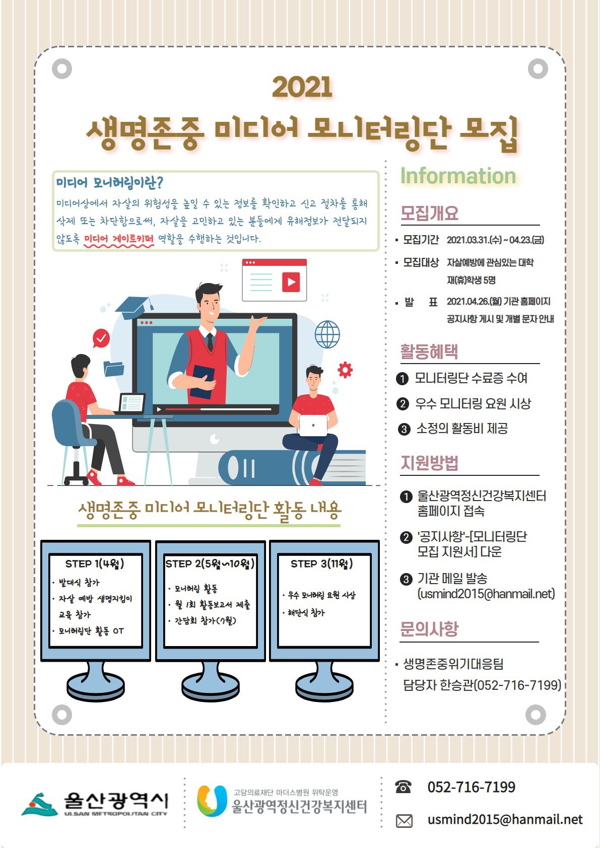 자살을 고민하고 있는 분들에게 유해정보가 전달되지 않도록 미디어 모니터링단을 모집합니다.