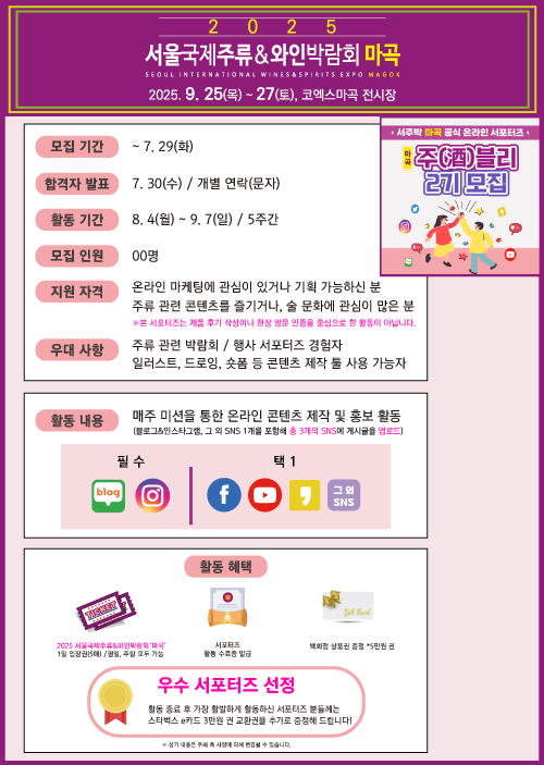 금년 행사 홍보를 도와주실 온라인 서포터즈를 모집합니다.