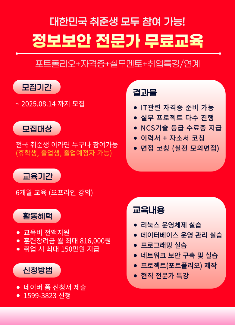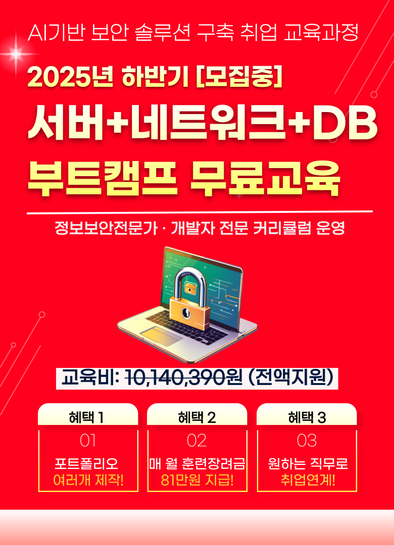 서버보안, 네트워크보안 엔지니어 취업 연계 국비지원 부트캠프 학원 교육
