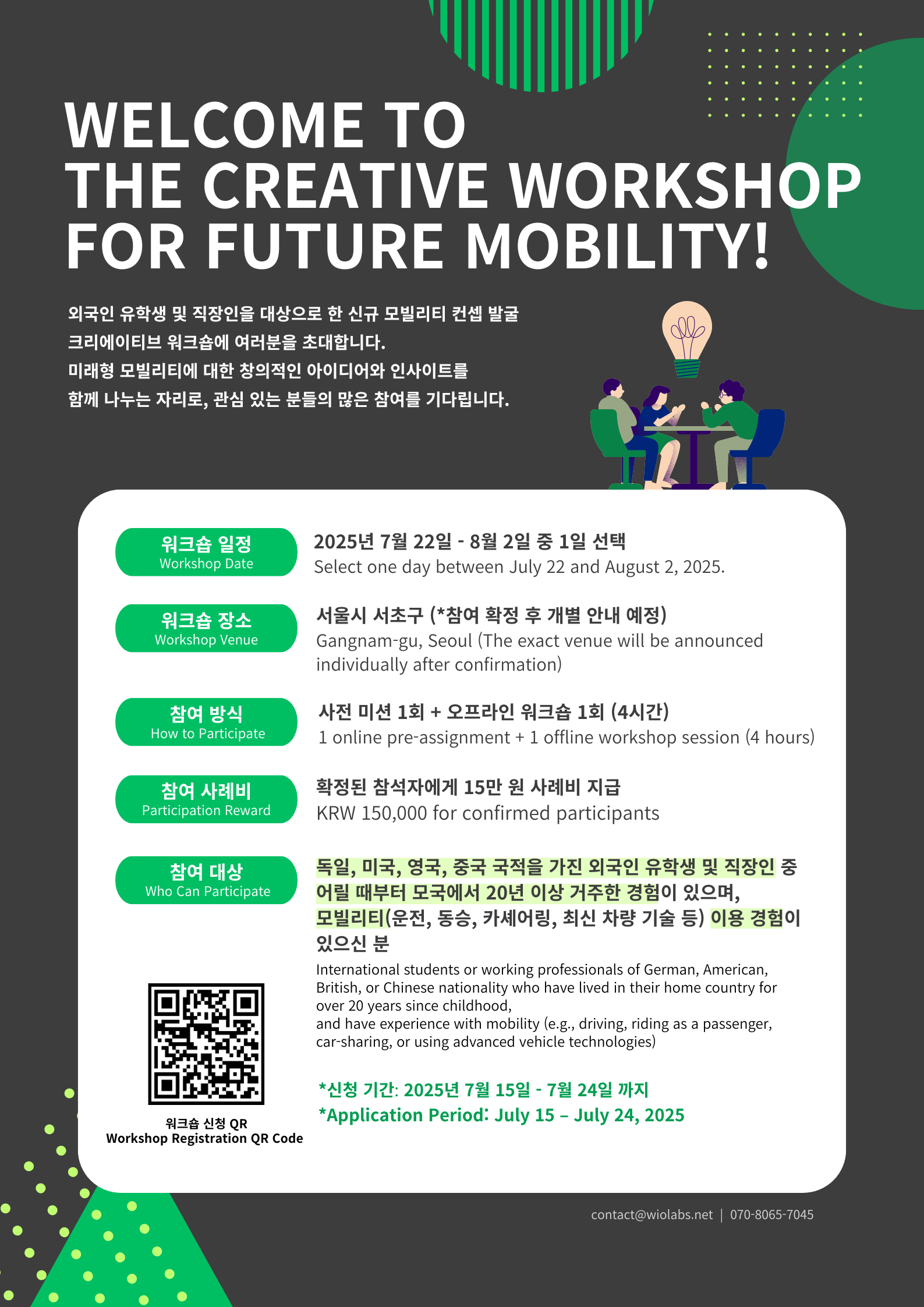 ▪︎ 참여 혜택: 15만 원 (사전 미션 1회 + 워크숍(4시간) 1회)