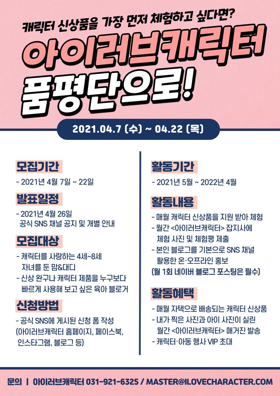 ▼ 2021 아이러브캐릭터 품평단 지원하기 ▼