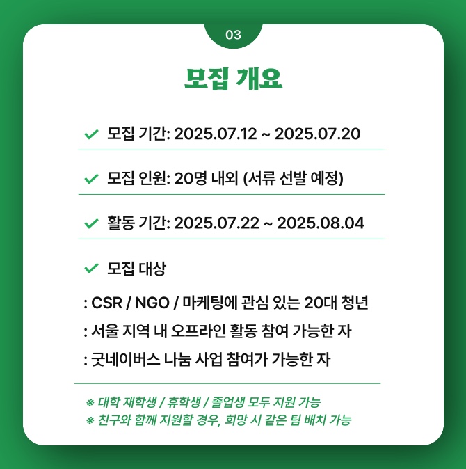 • CSR / NGO / 마케팅에 관심 있는 20대 청년 누구나