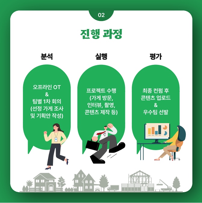 • CSR 기반 홍보 전략 기획 및 콘텐츠 제작 → 가게 방문 미팅 → 홍보 콘텐츠 제작 및 업로드