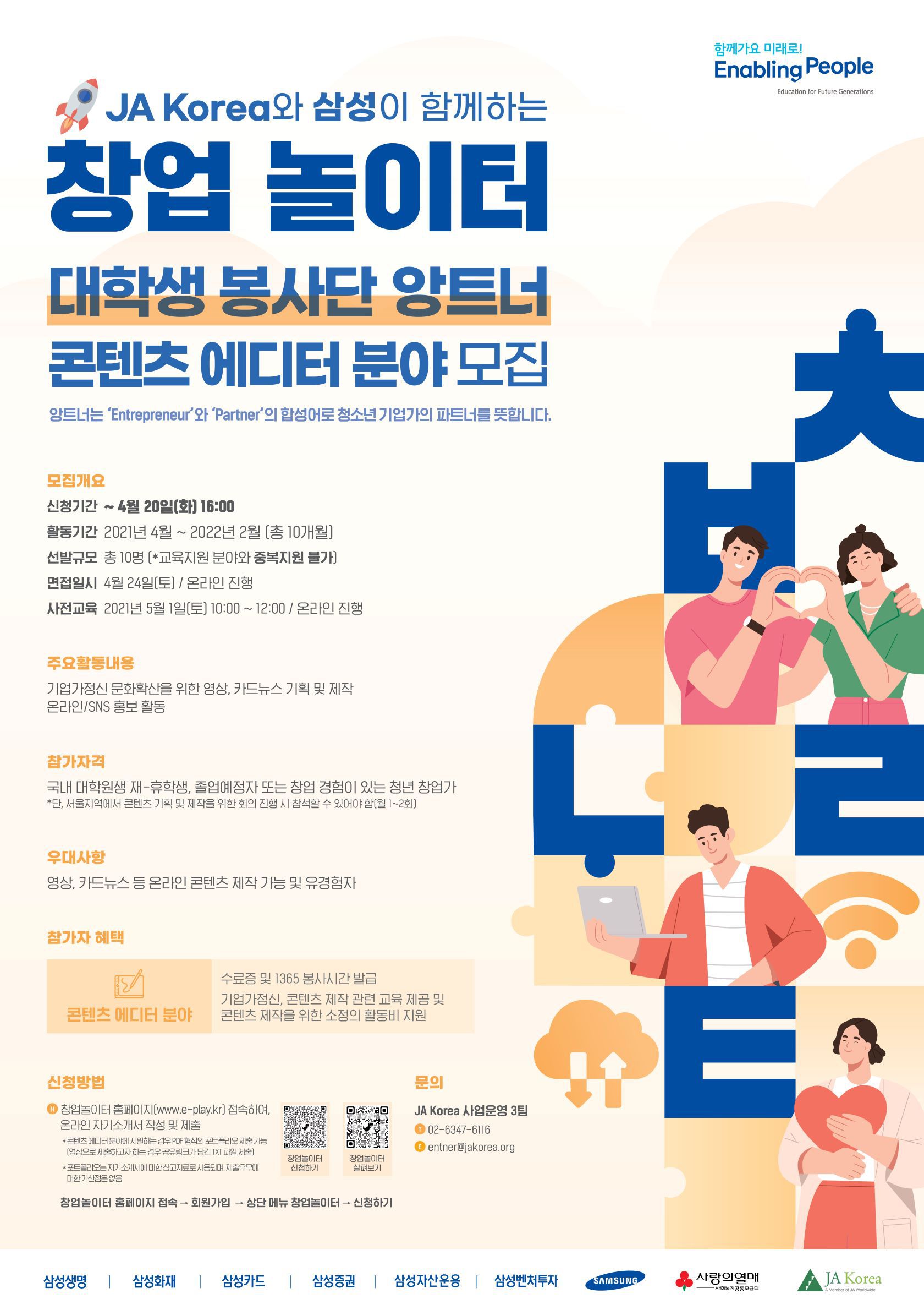 ○ 문의 : JA Korea 창업놀이터 앙트너 담당자 / entner@jakorea.org / Tel. 02-6347-6116