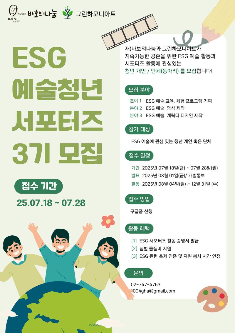 ● 모집 대상: ESG 예술 콘텐츠 제작에 관심 있는 20~30대 청년 누구나