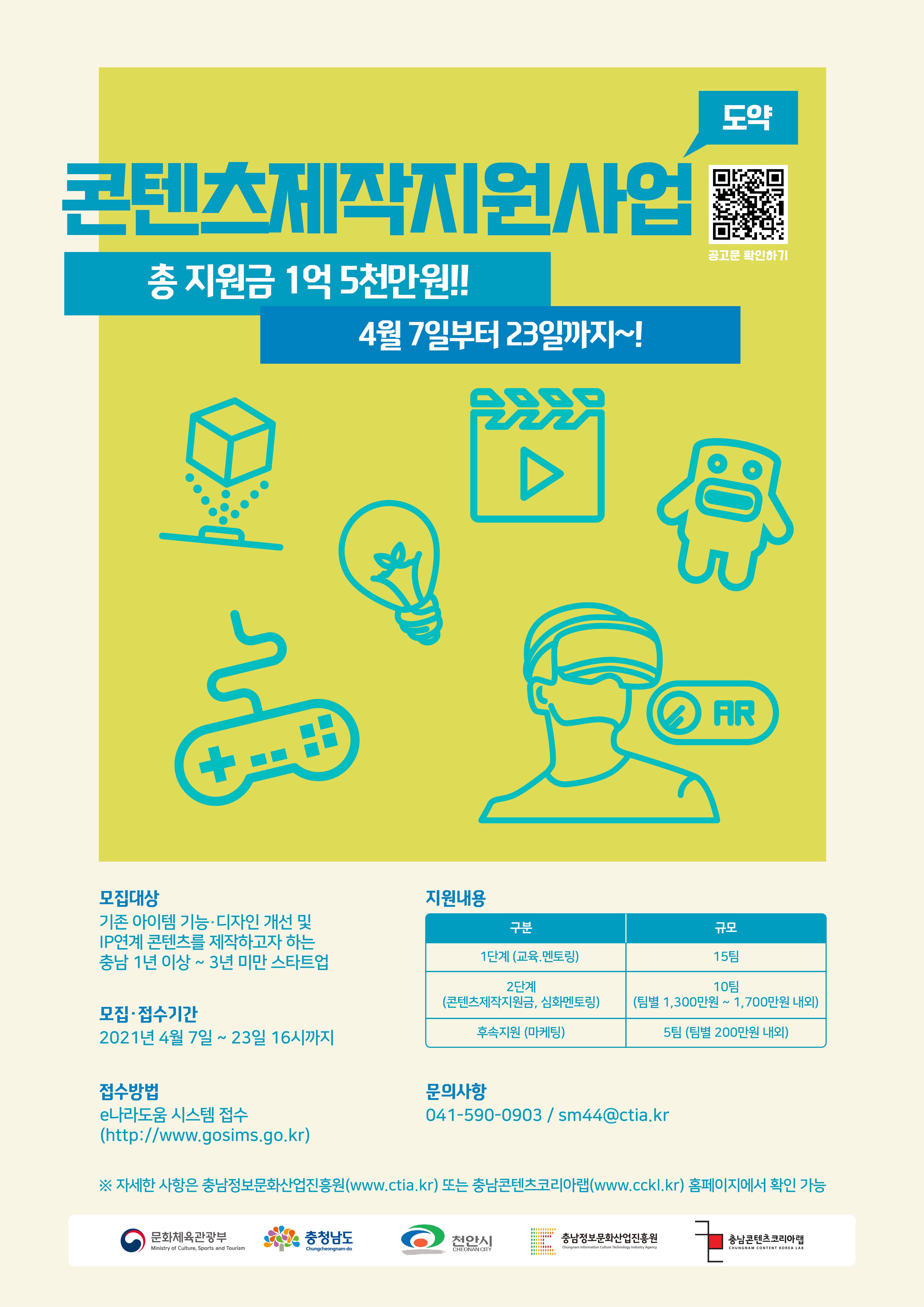 충남콘텐츠코리아랩 콘텐츠 제작 지원사업 참가자를 모집합니다 ! ★ 지원금 1억 5천만원 ★