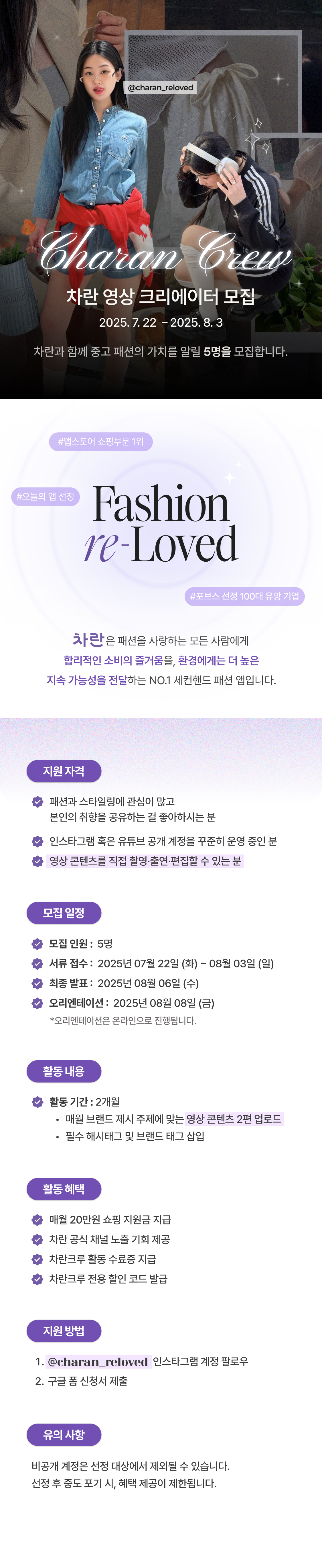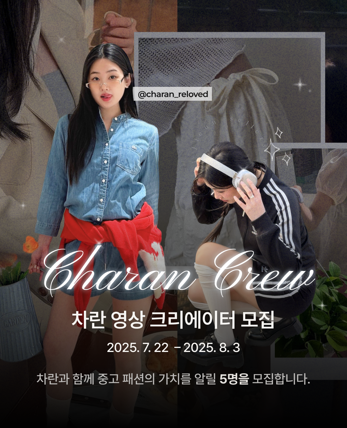세컨핸드의 가치와 패션의 재미를 함께 전할 차란크루를 찾습니다.