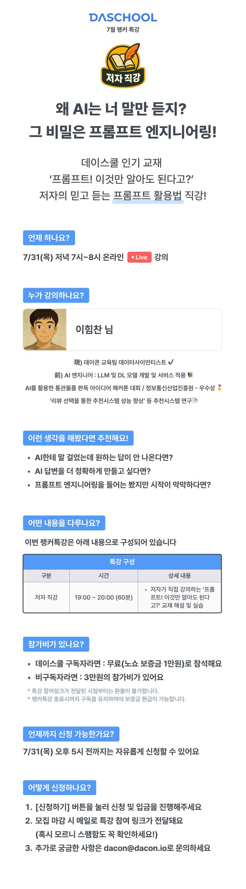 7/31(목) 오후 7시~8시 온라인 Live 강의