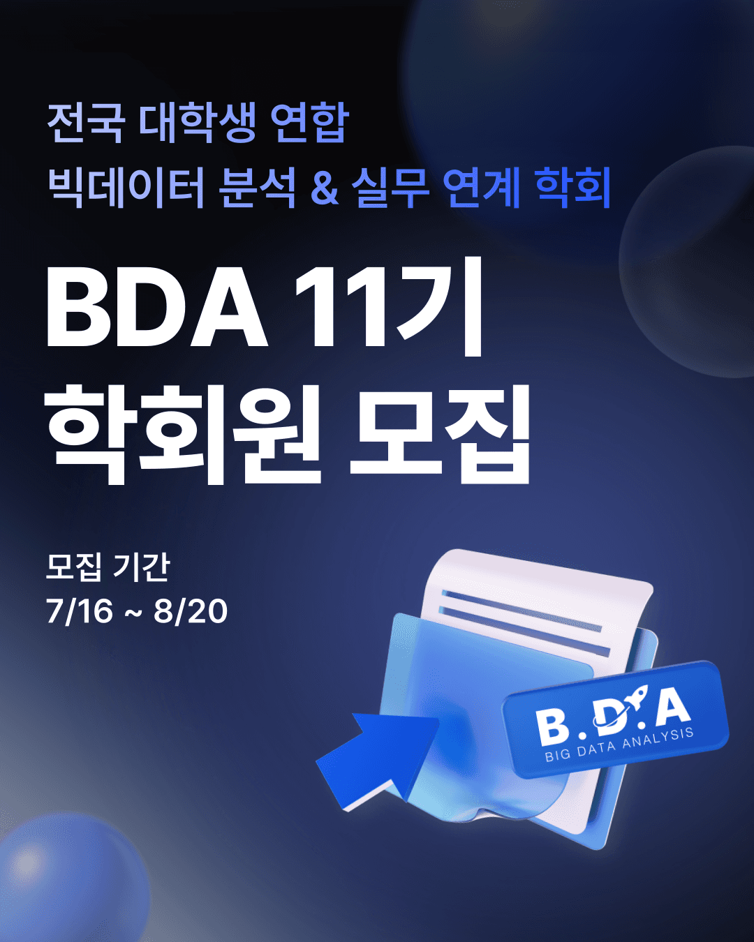 👉 카카오톡 BDA 11기 학회원 모집 공지방(입장 필수!)