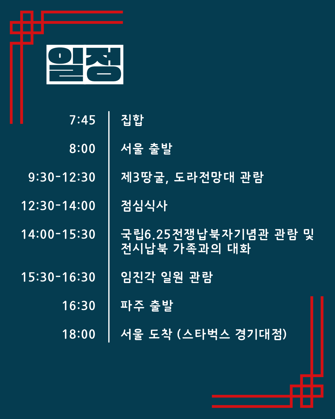 집결 시간: 7시 45분 (8시 정각 출발)