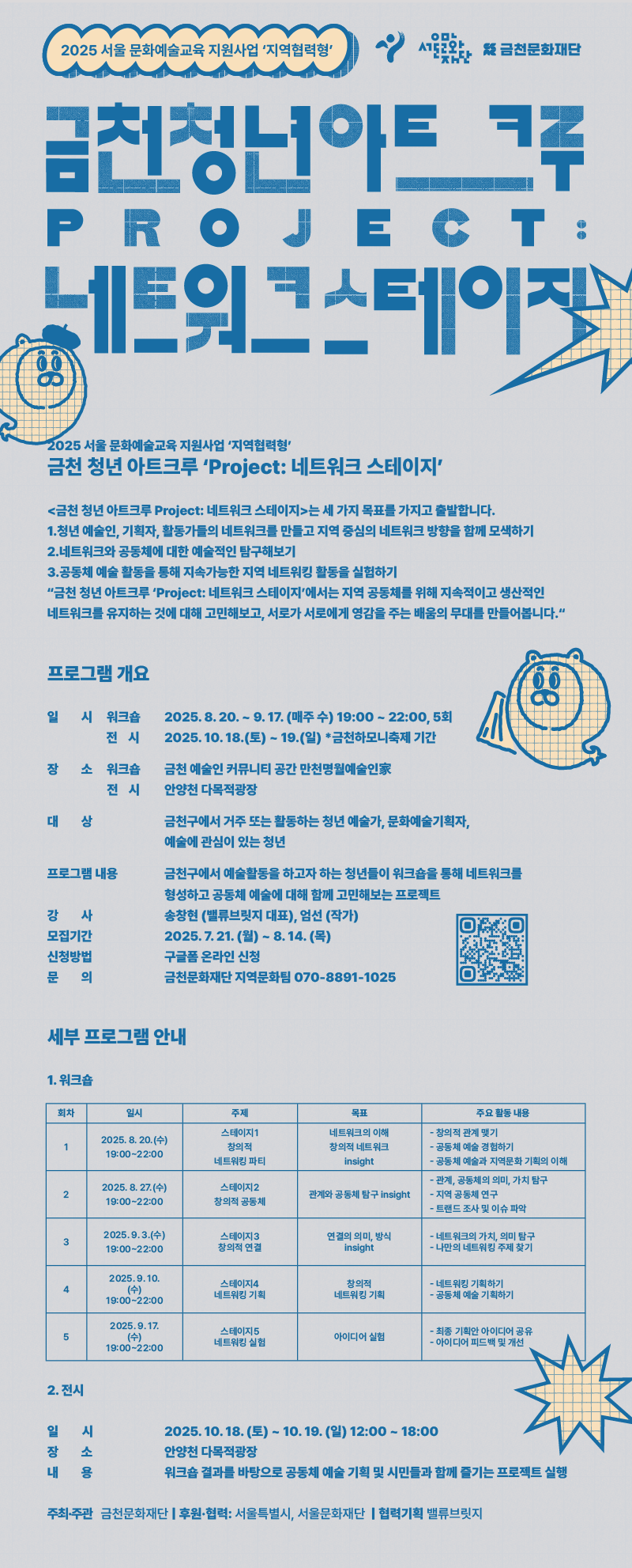 [모집] 2025 서울 문화예술교육 지원사업 '지역협력형' <금천 청년 아트크루 Project: 네트워킹 스테이지> 참여자 모집 안내📢