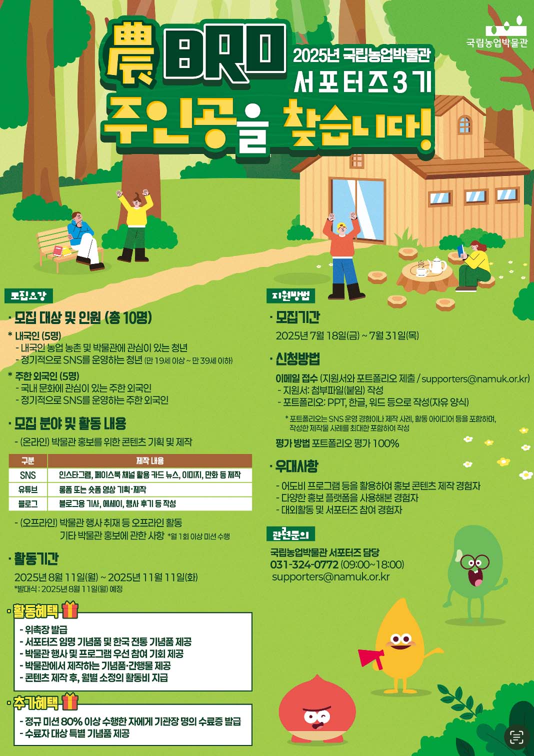 - 농업과 농촌 및 박물관에 관심 많은 내국인 청년 및 주한 외국인