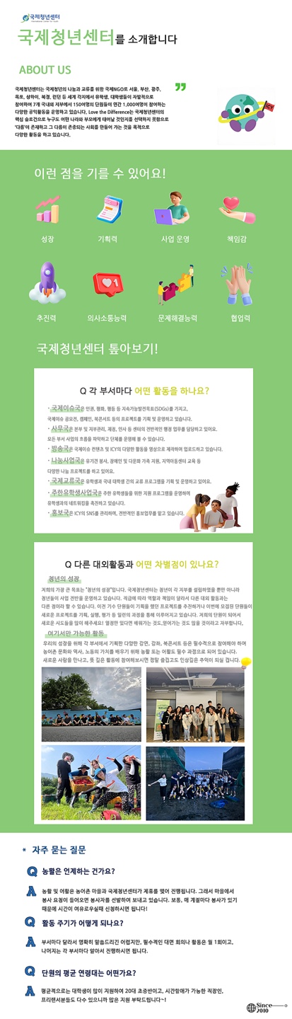 국제청년센터 활동에 대해 보다 세부적인 내용은 아래 링크에서 참조하세요.